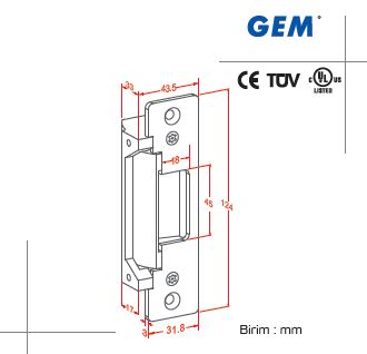 GEM Gianni GK 300M ANSI Standart Tip elektrikli kilit karşılığı, Yangına karşı dayanıklı olarak tasarlanmıştır. Yüksek güvenlik gerektiren genel uygulamalarda tercih sebebidir.